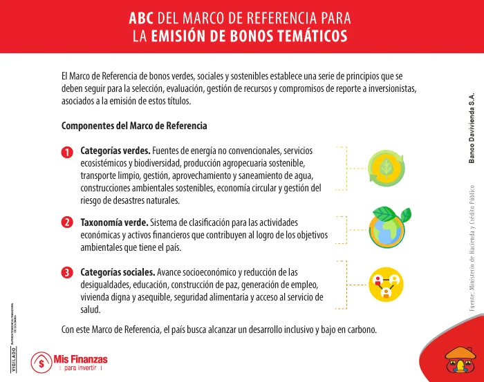 Colombia ha implementado una estrategia enfocada en las finanzas sostenibles. En ella, se adoptan criterios sociales y ambientales en las decisiones de inversión a largo plazo. Esta estrategia contempla, por ejemplo, la emisión de bonos temáticos como: verdes, sociales y sostenibles.