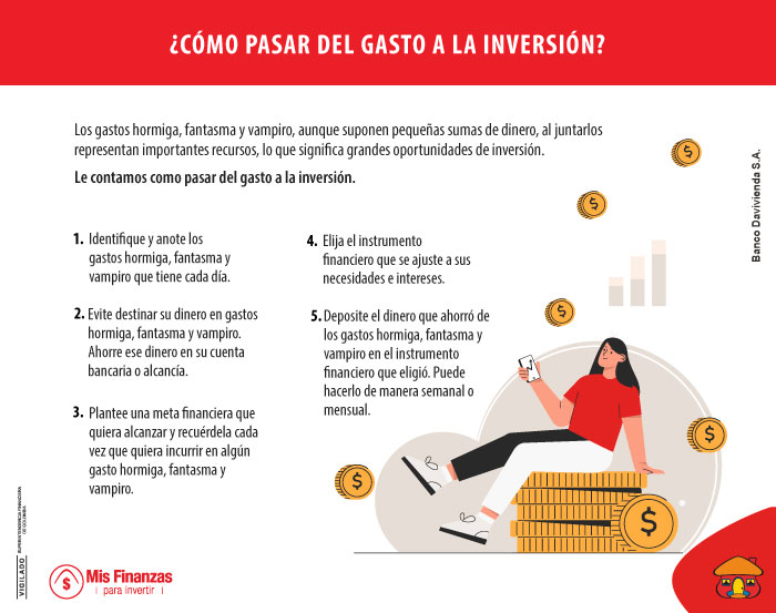 Aunque crea que los gastos hormiga, fantasma y vampiro suponen pequeñas sumas de dinero, al juntarlos representan importantes recursos, lo que significa grandes oportunidades de ahorro e inversión. Si cada mañana compra un café a $5.000, a la semana estaría gastando $35.000, al mes serían $150.000 y al año $1.825.000.