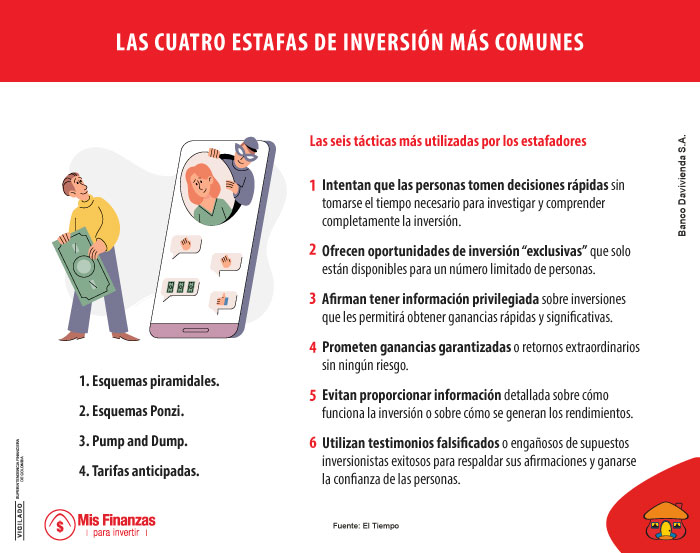 Las estafas en las inversiones son prácticas fraudulentas en las que los estafadores engañan a los inversionistas con el fin de obtener dinero de forma ilegal. Las estafas suelen implicar la promesa de altos rendimientos sin ningún riesgo, la manipulación de información y las tácticas engañosas para convencer a las personas de invertir en productos fraudulentos.