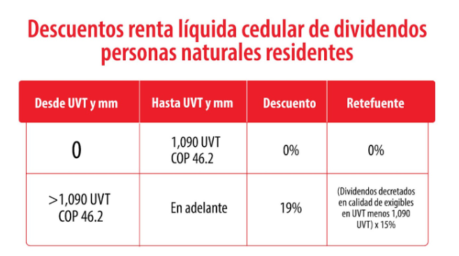 Al momento del pago de los dividendos, la legislación colombiana establece que la empresa debe efectuar una retención que se aplica sobre el monto bruto del valor correspondiente al dividendo. A continuación, presentamos aspectos tributarios de los dividendos en Colombia.